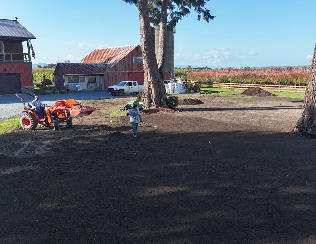 With the foundation reset, we overseeded the entire property using high-quality grass seed also provided by Lefebure Turf Farm, guaranteeing a blend fit for the Pacific Northwest climate. To lock in moisture and support germination, we finished with a full peat moss top-coat, giving the new seed the best possible start.